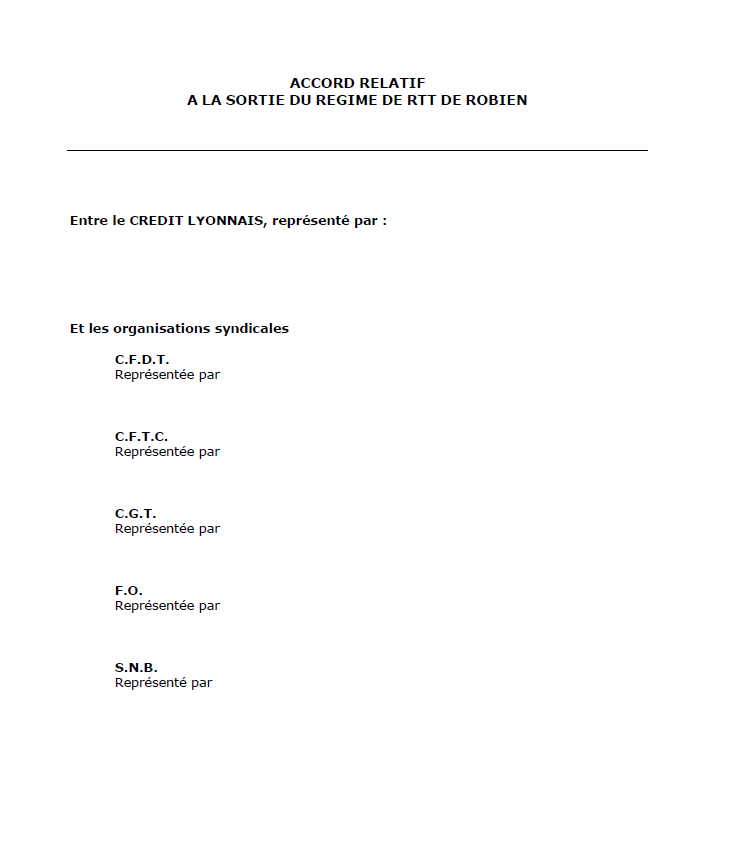 Accord d'entreprise relatif à la sortie du régime de RTT de Robien