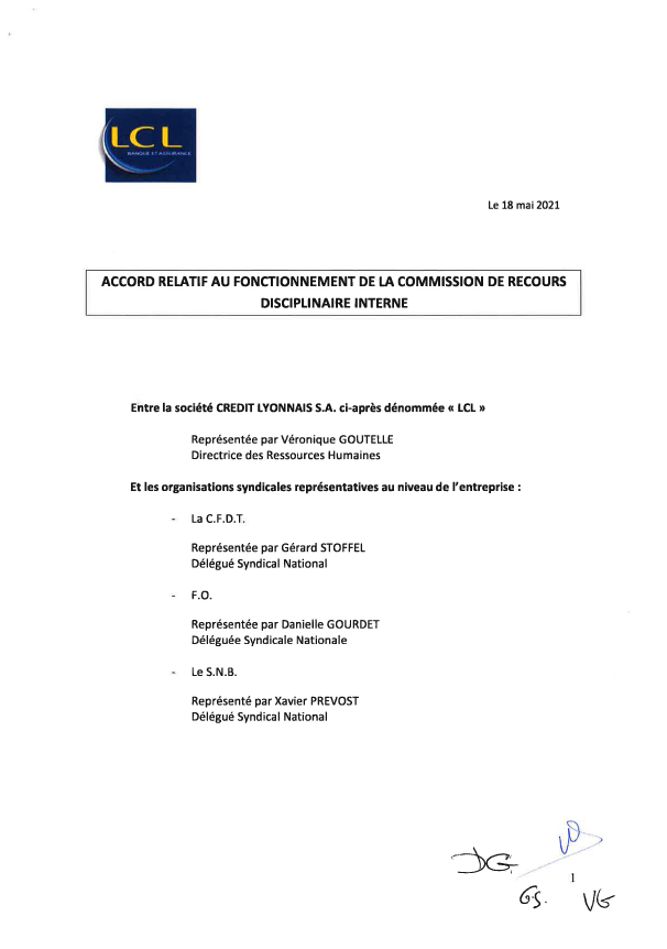 signé Accord fonctionnement de la commission de recours disciplinaire interne