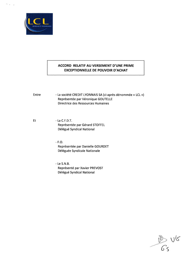 signé Accord relatif au versement d'une prime exceptionnelle de pouvoir d'achat
