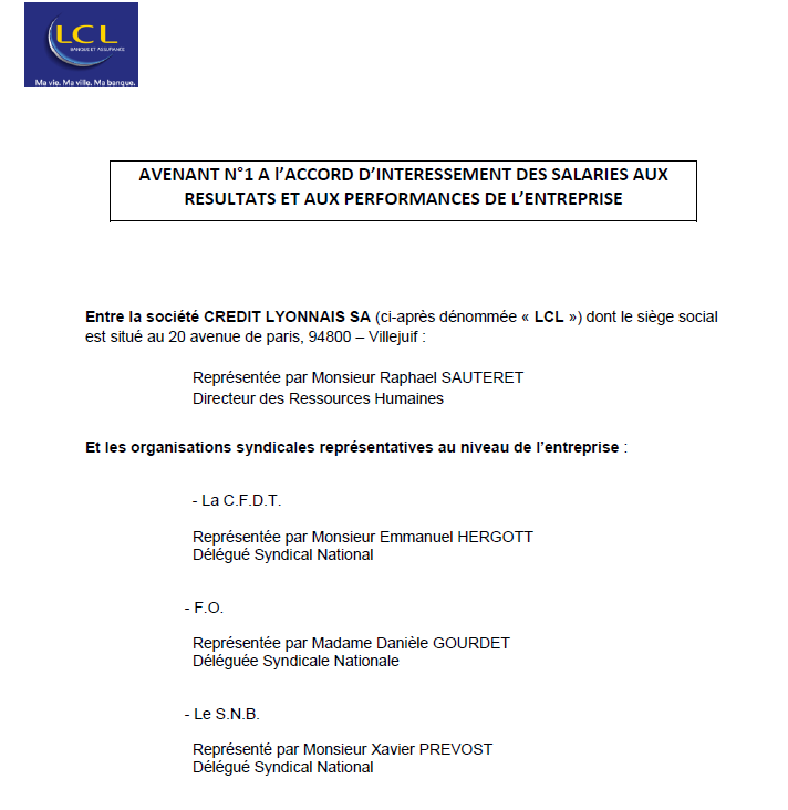 signé Avenant n°1 à l'accord d'intéressement signé en 2023
