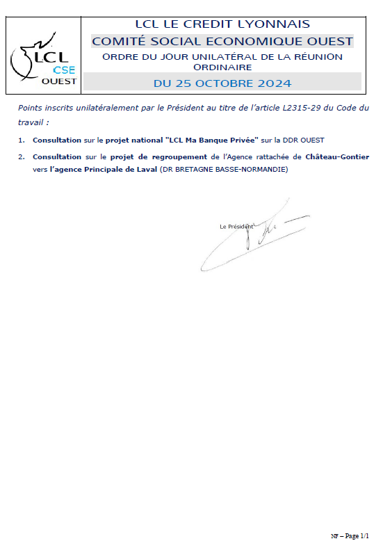 ODJ CSE OUEST du 25 OCTOBRE 2024