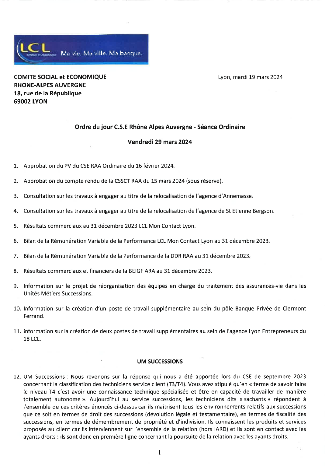 ODJ CSE RAA du 29 mars 2024