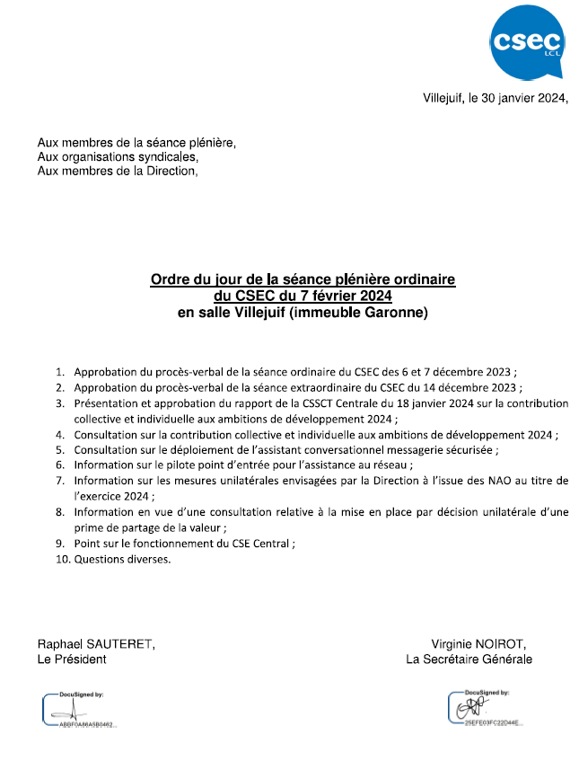 ODJ CSEC du 07/02/2024