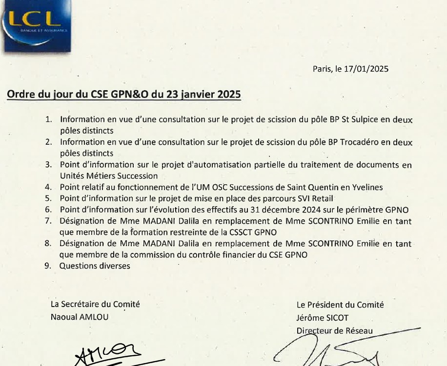 ODJ DU CSE GPNO DU 23 JANVIER 2025
