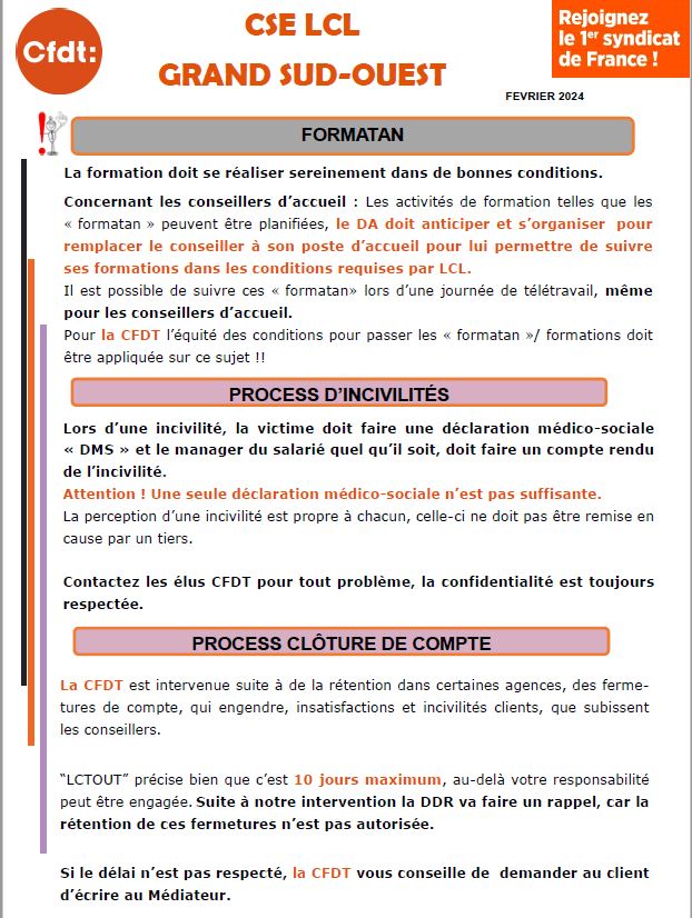 CFDT-LCL rassemble + de 10 équipes de proximité au sein du Groupe LCL.