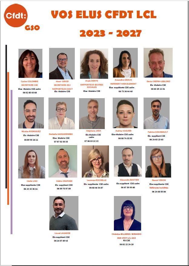 CFDT-LCL rassemble + de 10 équipes de proximité au sein du Groupe LCL.