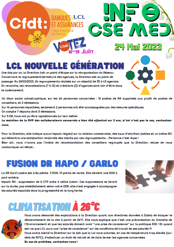 CFDT-LCL rassemble + de 10 équipes de proximité au sein du Groupe LCL.