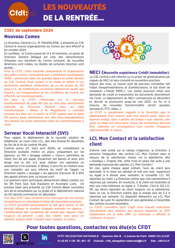 CFDT-LCL rassemble + de 10 équipes de proximité au sein du Groupe LCL.