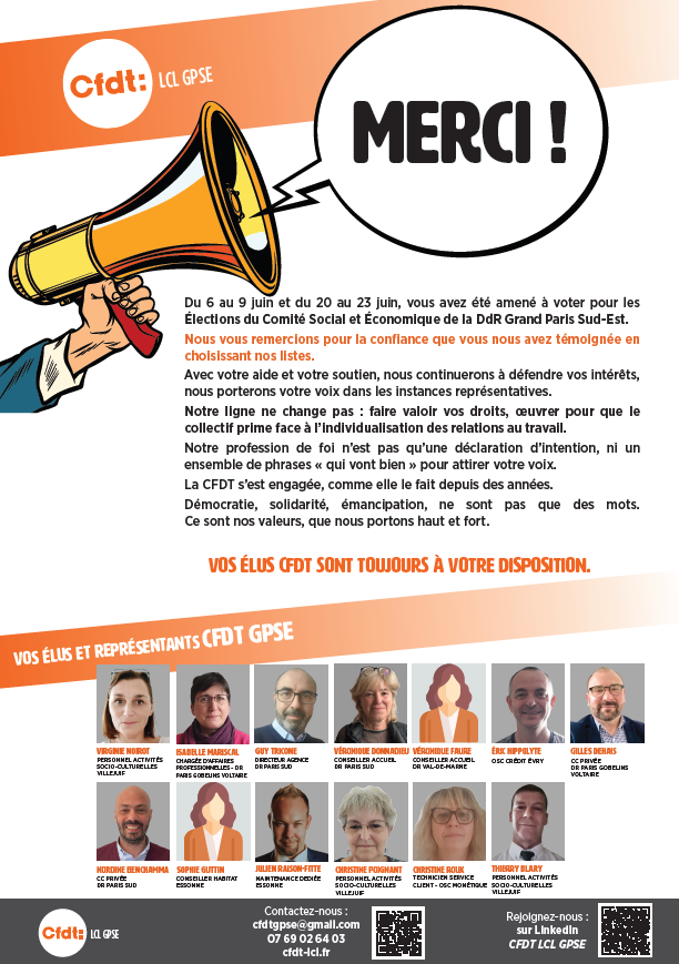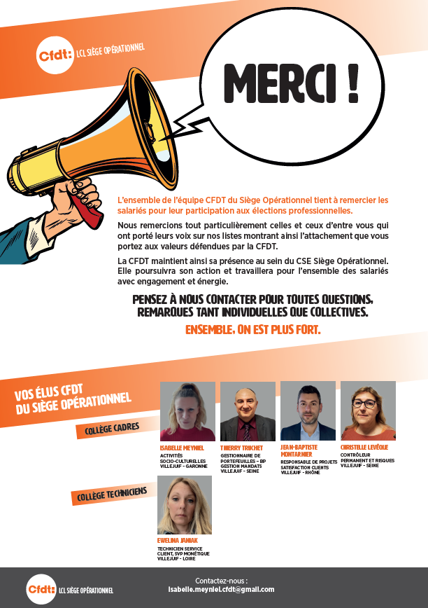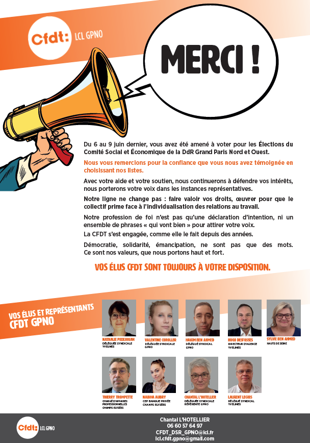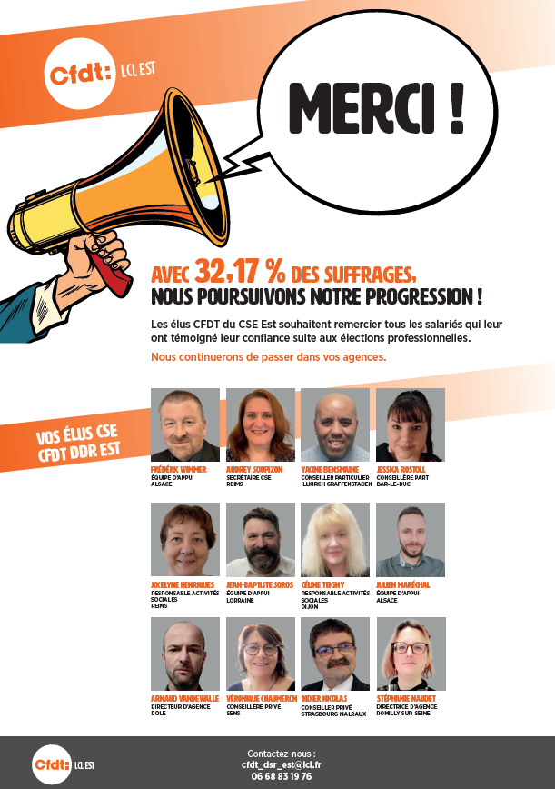 CFDT-LCL rassemble + de 10 équipes de proximité au sein du Groupe LCL.