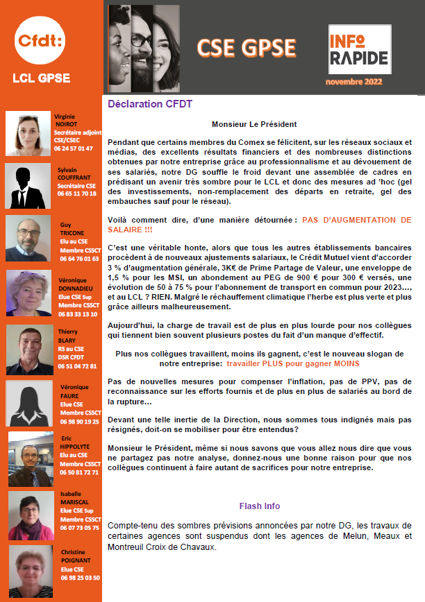 CFDT-LCL rassemble + de 10 équipes de proximité au sein du Groupe LCL.