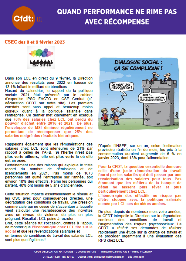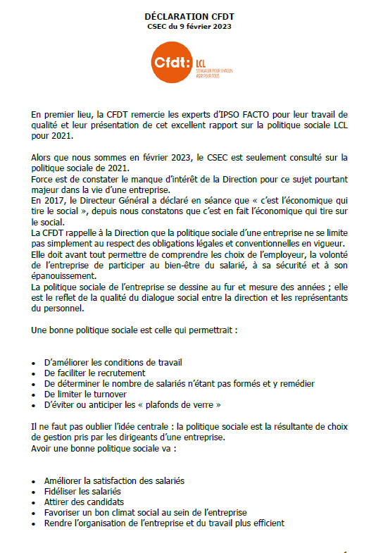 CFDT-LCL rassemble + de 10 équipes de proximité au sein du Groupe LCL.