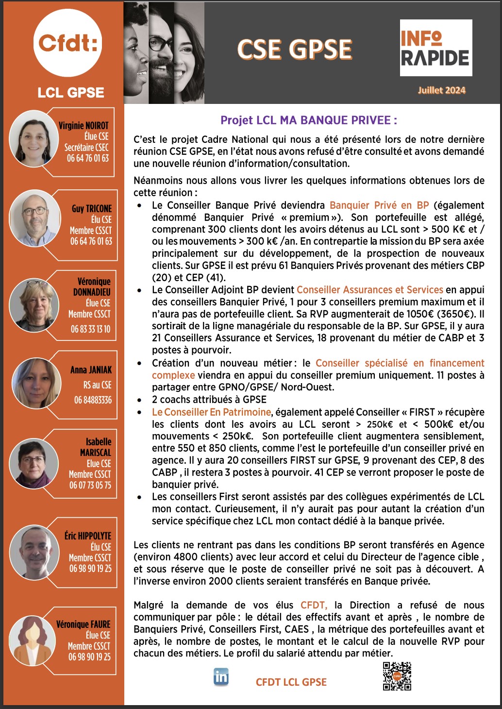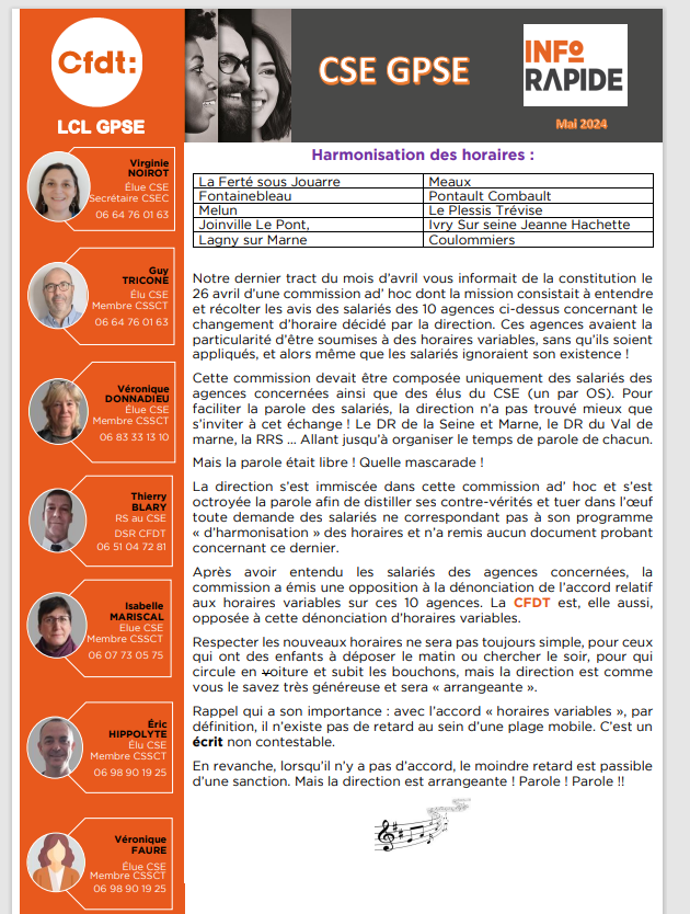 CFDT-LCL rassemble + de 10 équipes de proximité au sein du Groupe LCL.