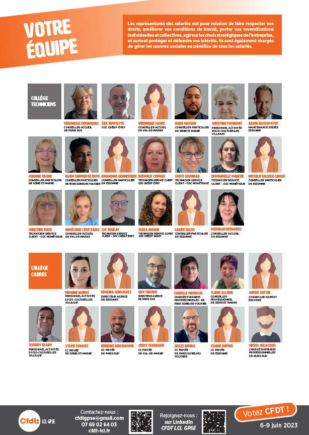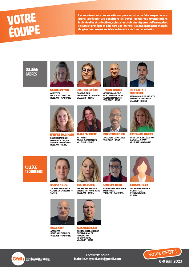 CFDT-LCL rassemble + de 10 équipes de proximité au sein du Groupe LCL.