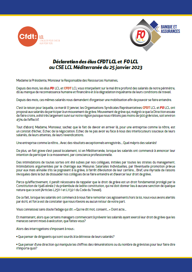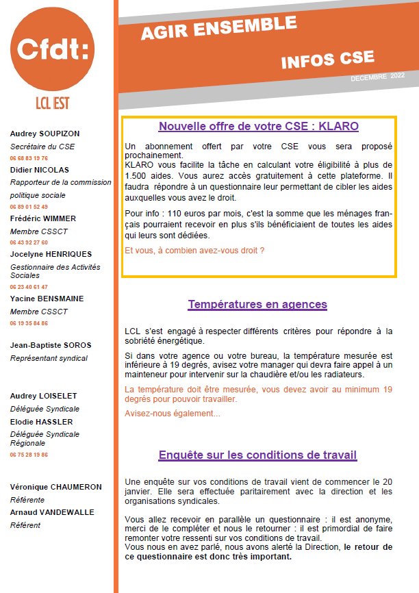 CFDT-LCL rassemble + de 10 équipes de proximité au sein du Groupe LCL.