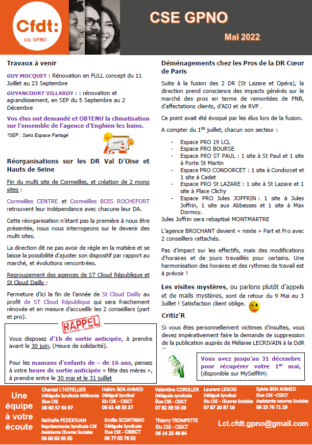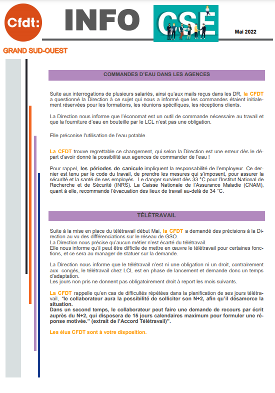 CFDT-LCL rassemble + de 10 équipes de proximité au sein du Groupe LCL.