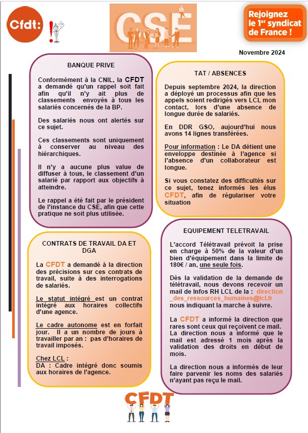 CFDT-LCL rassemble + de 10 équipes de proximité au sein du Groupe LCL.