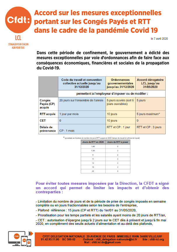 Accord mesures exceptionnelles RTT et CP - COVID 19
