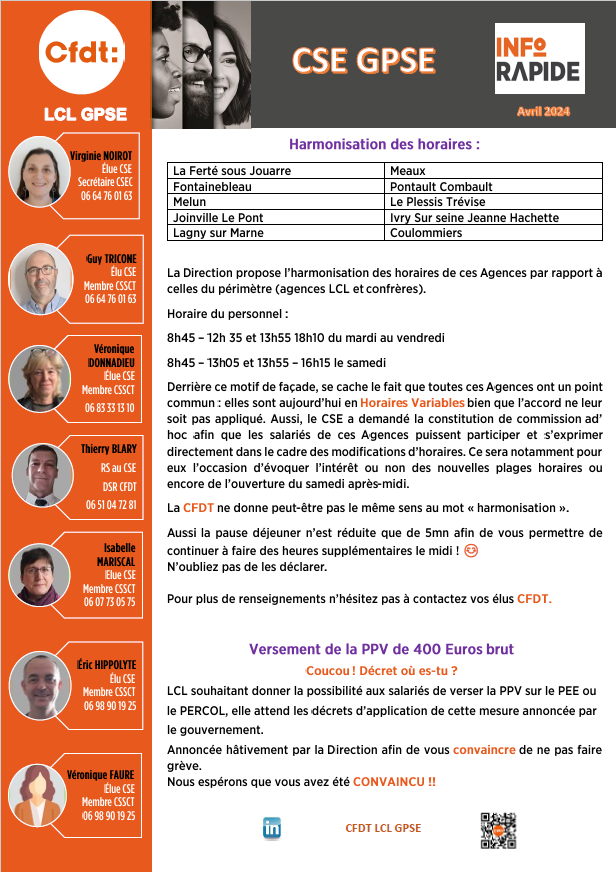CFDT-LCL rassemble + de 10 équipes de proximité au sein du Groupe LCL. En savoir plus sur le réseau