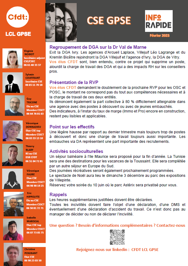 CFDT-LCL rassemble + de 10 équipes de proximité au sein du Groupe LCL. En savoir plus sur le réseau