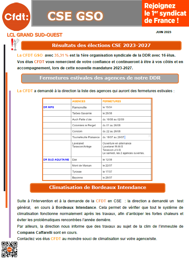 L'essentiel de l'actualité du CSE GSO de juin 2023.