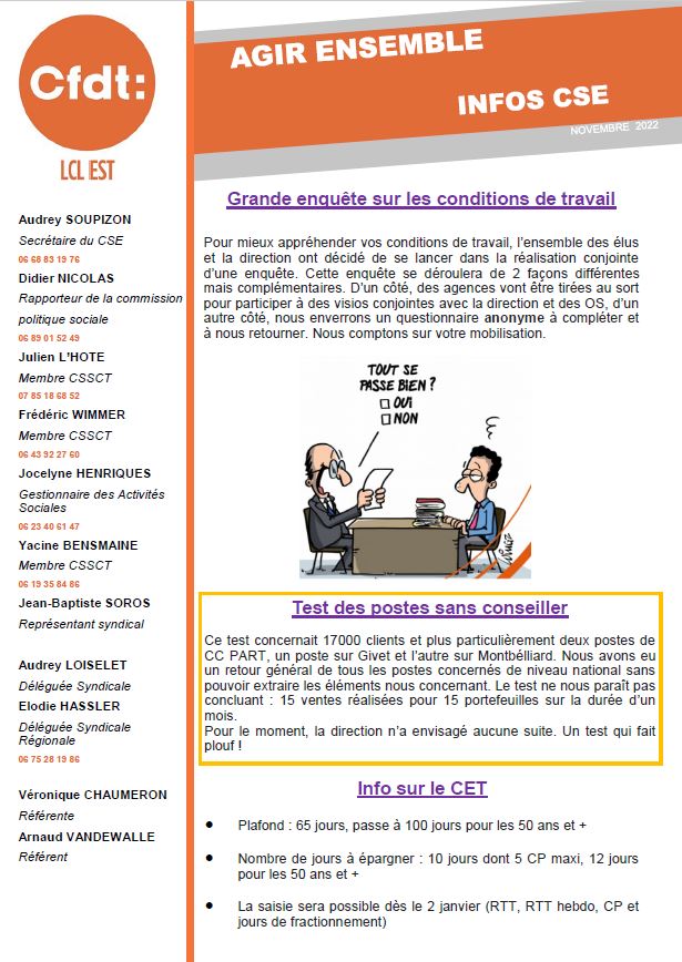 CFDT-LCL rassemble + de 10 équipes de proximité au sein du Groupe LCL. En savoir plus sur le réseau