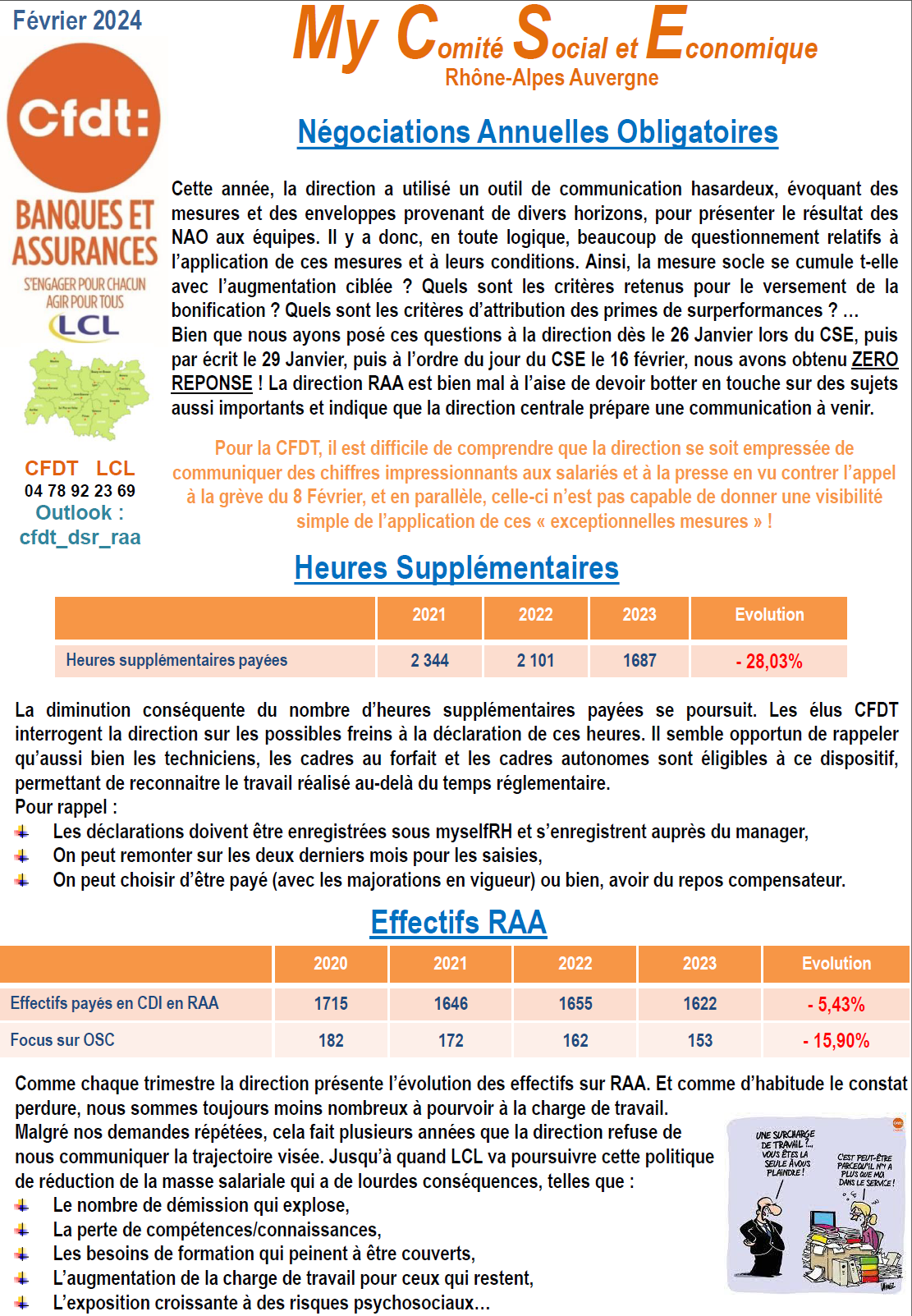 Vous trouverez ici les informations concernant les NAO, les heures supplémentaires sur RAA, l'effectif de RAA ainsi que le programme de relocalisation du début d'année.