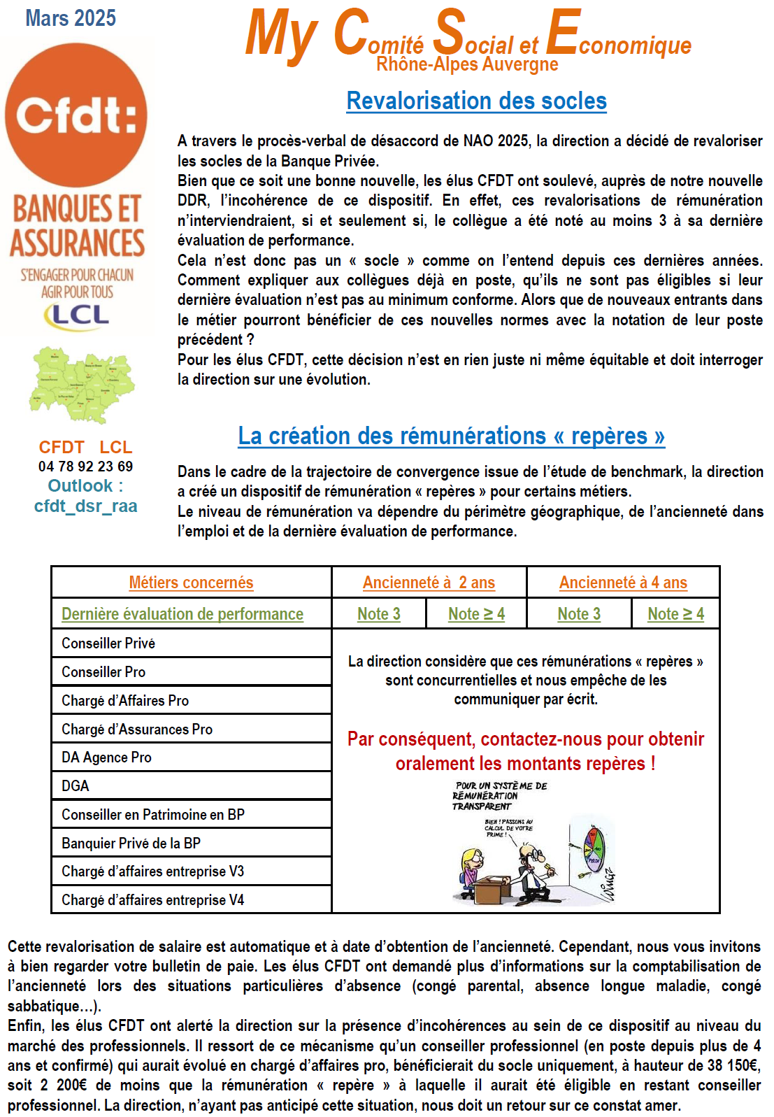 Veuillez trouver ci-joint la communication suite au CSE de mars concernant notament les points sur les socles, repères, l'application de l'accord télétravail ainsi que les "Bugs" continuels chez LCL.