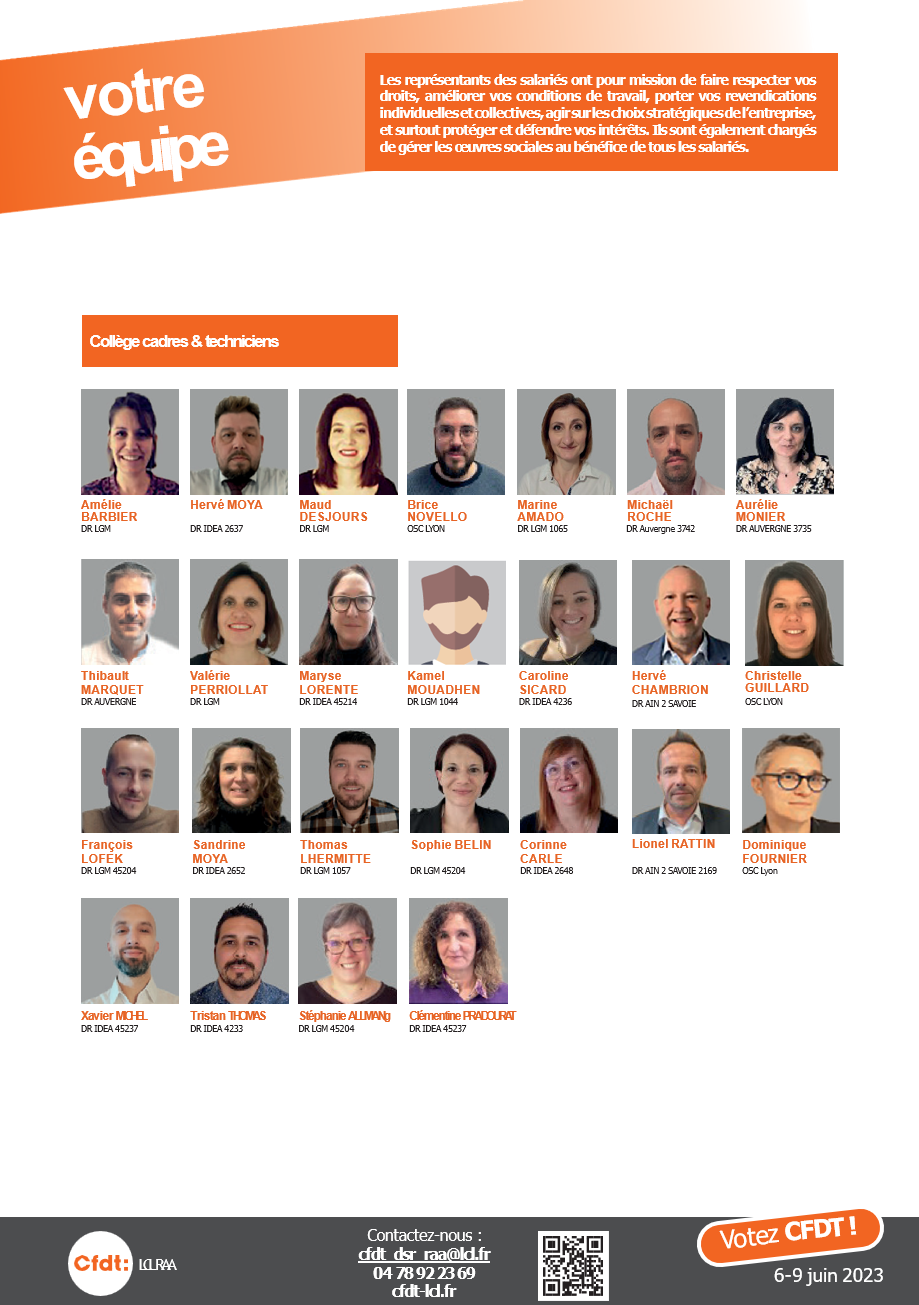 Elections des représentants du personnel : vos candidats CFDT de la DdR RAA